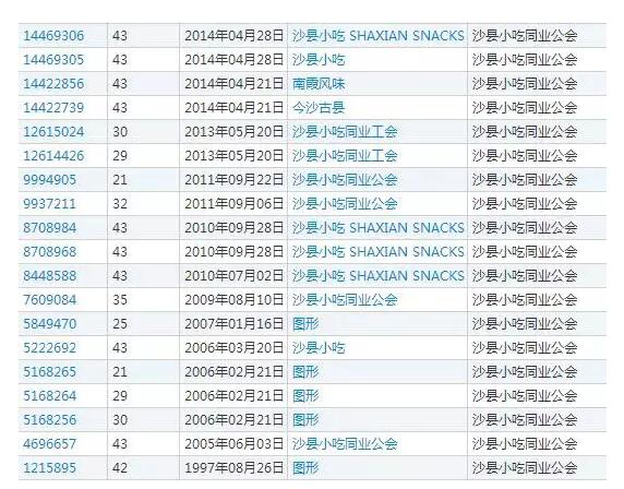 不仅如此,沙县小吃同业工会还注册了小部分防御型商标,甚至将特色食品也进行了注册。